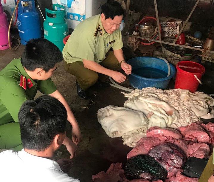 Cũng liên quan đến thực phẩm bẩn, thực phẩm nhập lậu, ngày 1/4, Đội QLTT số 2, Cục QLTT Lai Châu phối hợp với Công an phường Đoàn Kết tiến hành kiểm tra và phát hiện 220kg nội tạng trâu, bò không rõ nguồn gốc xuất xứ, đã bốc mùi hôi thối không đảm bảo vệ sinh an toàn thực phẩm tại chợ Đoàn Kết, TP. Lai Châu.