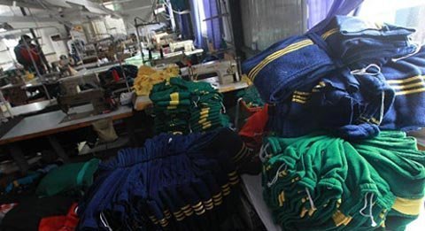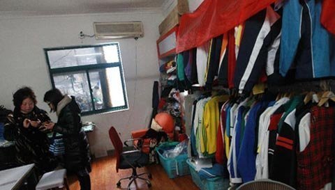 | Ouxia xếp đống các sản phẩm đồng phục học sinh tại xưởng của hãng ở Thượng Hải ngày 17/2/2013. |