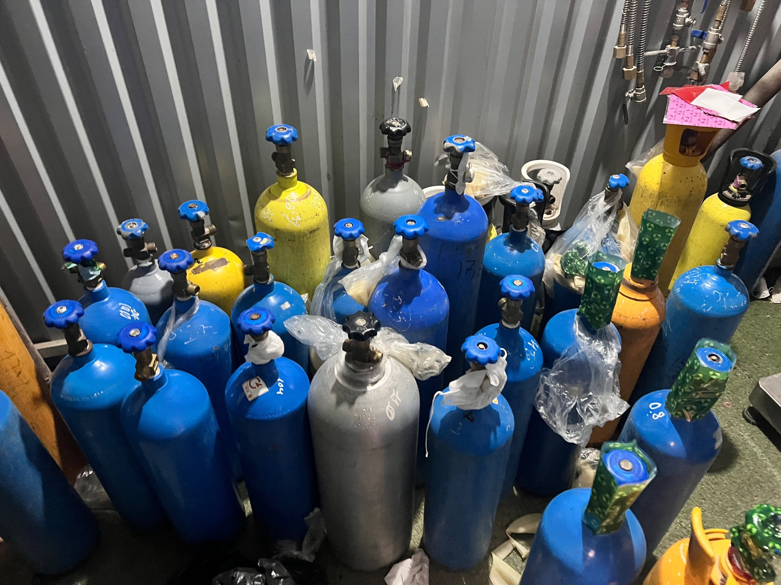 Kho sang chiết được ngụy trang, núp bóng vô cùng tinh vi, đồng thời thu giữ hơn 100 bình khí N2O các loại cùng nhiều vỏ bóng.