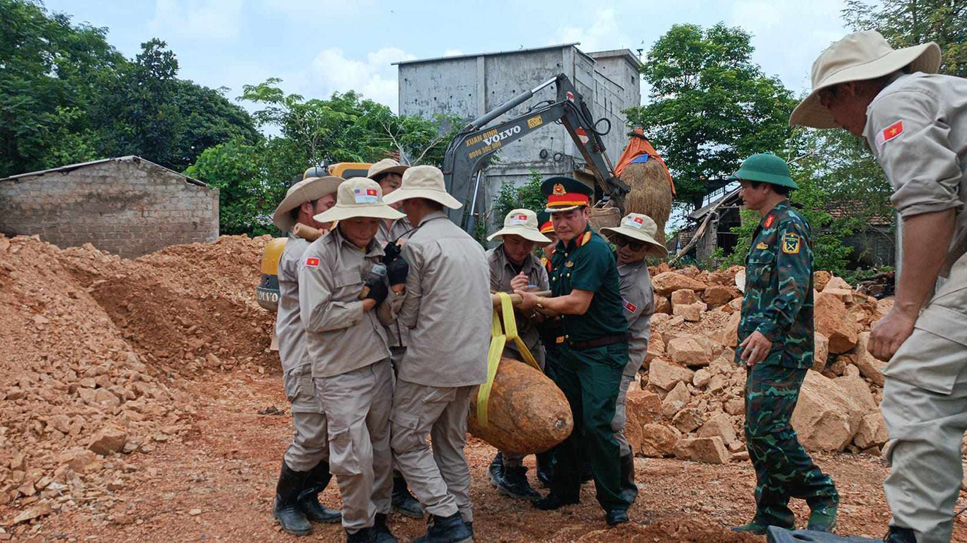 Trong hôm nay, lực lượng công binh, Bộ Chỉ huy quân sự tỉnh Quảng Bình đã đến hiện trường. Các chuyên gia về bom mìn tiến hành xác định tình trạng quả bom và đưa ra phương án tháo gỡ an toàn.