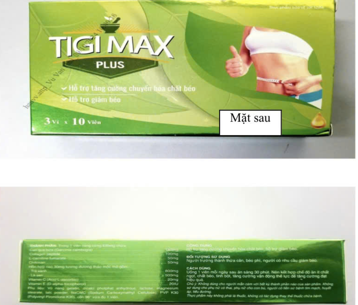 Thực phẩm bảo vệ sức khỏe TIGI MAX PLUS (Lô SX: 0001; NSX: 20/01/2023; HSD: 19/01/2026); Số ĐKSP: 11127/2020/ĐKSP; Quy cách: Hộp 3 vỉ x 10 viên. Sản phẩm được sản xuất tại: Công ty Cổ phần BIGFA, địa chỉ: khu công nghiệp Lương Sơn, KM36-QL6, xã Hòa Sơn, huyện Lương Sơn, tỉnh Hòa Bình. Thương nhân chịu trách nhiệm về sản phẩm là Công ty TNHH Đầu tư Thương mại và Dịch vụ Bảo An LUXURY, địa chỉ: thôn Cầu Giát, xã Hợp Lý, huyện Lập Thạch, tỉnh Vĩnh Phúc.
