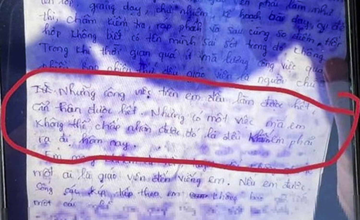 Bức thư tuyệt mệnh do cô giáo P. để lại. Ảnh: Công an cung cấp. |