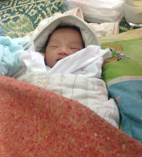 Trẻ sơ sinh bị bỏ rơi đang được chăm sóc tại rạm Y tế xã. Ảnh: Điện Cương
