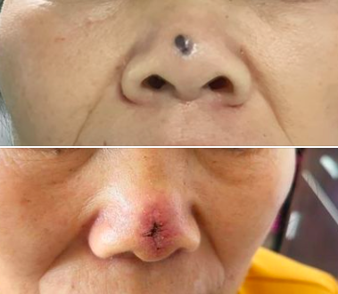 Trong số này, ung thư tế bào đáy (như trường hợp bệnh nhân 49 tuổi) là thường gặp nhất, chiếm khoảng 75%. Trong khi đó, ung thư hắc tố (chiếm khoảng 5%) là bệnh lý ác tính, nguy hiểm nhất vì nó xâm lấn sâu, tiến triển nhanh, di căn sang các bộ phận khác của cơ thể. Theo Globocan, năm 2020, 193 người Việt Nam mắc ung thư hắc tố và 120 ca tử vong.