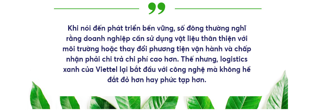 Lĩnh vực logistics của Viettel đang tận dụng triệt để xu hướng này. Khi nói đến phát triển bền vững, số đông thường nghĩ rằng doanh nghiệp cần sử dụng vật liệu thân thiện với môi trường hoặc thay đổi phương tiện vận hành và chấp nhận phải chi trả chi phí cao hơn. Thế nhưng, logistics xanh của Viettel lại bắt đầu với công nghệ mà không hề đắt đỏ hơn hay phức tạp hơn.
