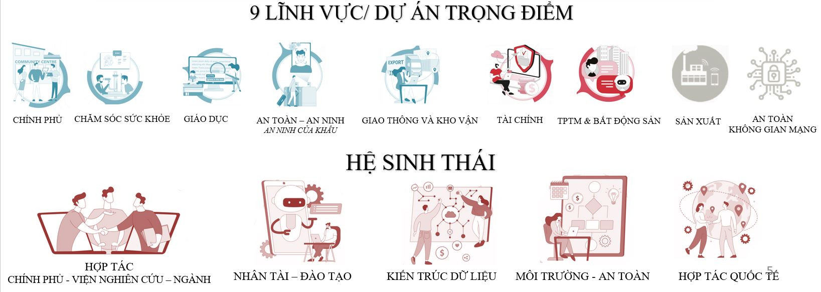 Xây dựng cộng đồng nghiên cứu, phát triển và ứng dụng AI dựa trên nòng cốt là nhân sự và lãnh đạo của các doanh nghiệp thuộc nhiều ngành nghề khác nhau, tạo thành phong trào triển khai AI rộng rãi, đặc biệt là sự trao đổi tri thức liên quan đến ứng dụng AI mạnh mẽ. Trong đó, các nền tảng có thể tập trung vào những lĩnh vực chủ chốt như: Chính phủ số, tài chính, nông nghiệp, y tế, giáo dục, giao thông vận tải…