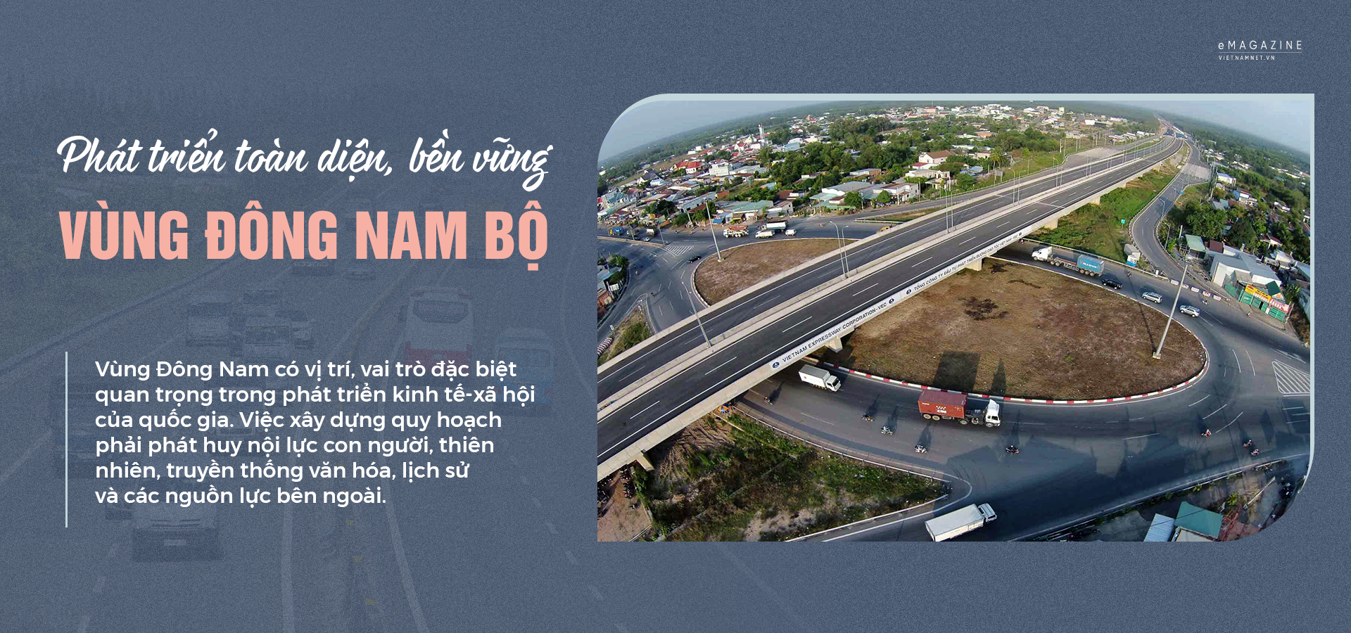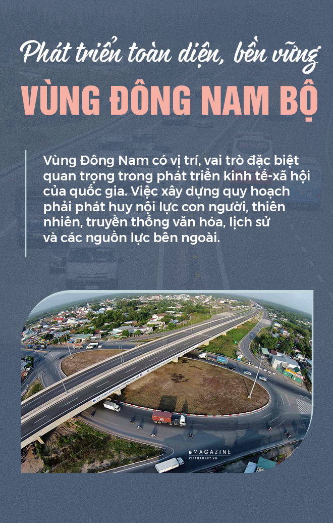 Vùng Đông Nam bộ gồm TPHCM và 5 tỉnh Đồng Nai, Bình Dương, Bà Rịa-Vũng Tàu, Bình Phước, Tây Ninh. Đây là vùng có vị trí, vai trò đặc biệt quan trọng trong phát triển kinh tế-xã hội của quốc gia. Việc xây dựng quy hoạch phải phát huy nội lực con người, thiên nhiên, truyền thống văn hóa, lịch sử và các nguồn lực bên ngoài để phát triển toàn diện, bền vững.