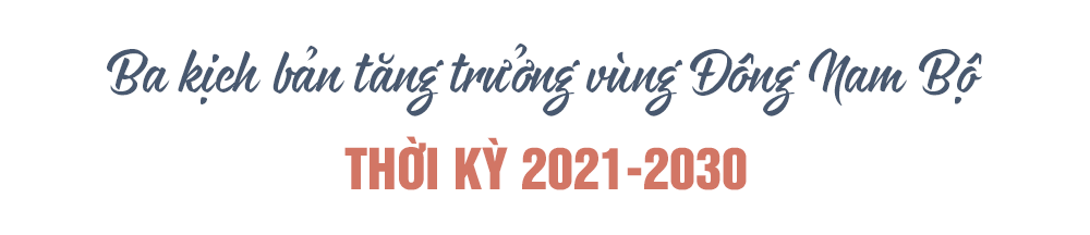 Trên cơ sở đó, Viện Chiến lược Phát triển đã dựa trên các giả định và biến đầu vào như Tăng trưởng kinh tế, thương mại và đầu tư; Biến đổi về nhân khẩu học; Vấn đề xã hội; Biến đổi khí hậu; Cách mạng Công nghiệp 4.0; Yếu tố từ bối cảnh kinh tế-xã hội-môi trường của Việt Nam và Yếu tố nội tại của Vùng Đông Nam Bộ, để đưa ra 3 kịch bản tăng trưởng thời kỳ 2021-2030.