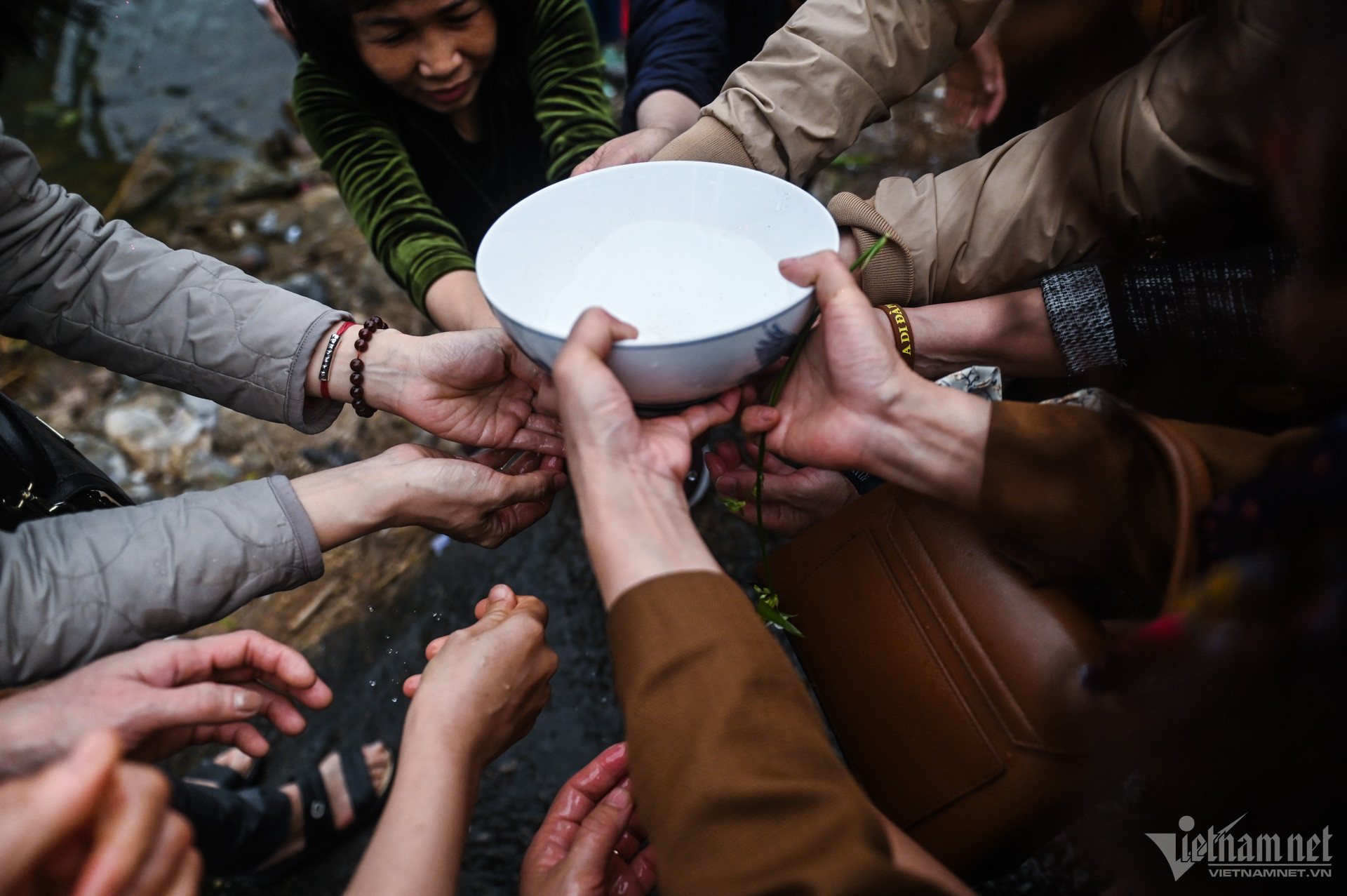 Sau khi lễ phóng sinh kết thúc, nhiều người rửa tay bằng bát nước đã trì chú cho mát mẻ.