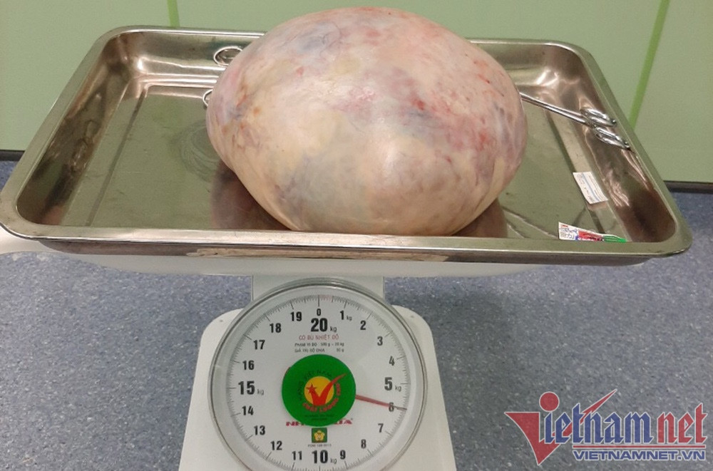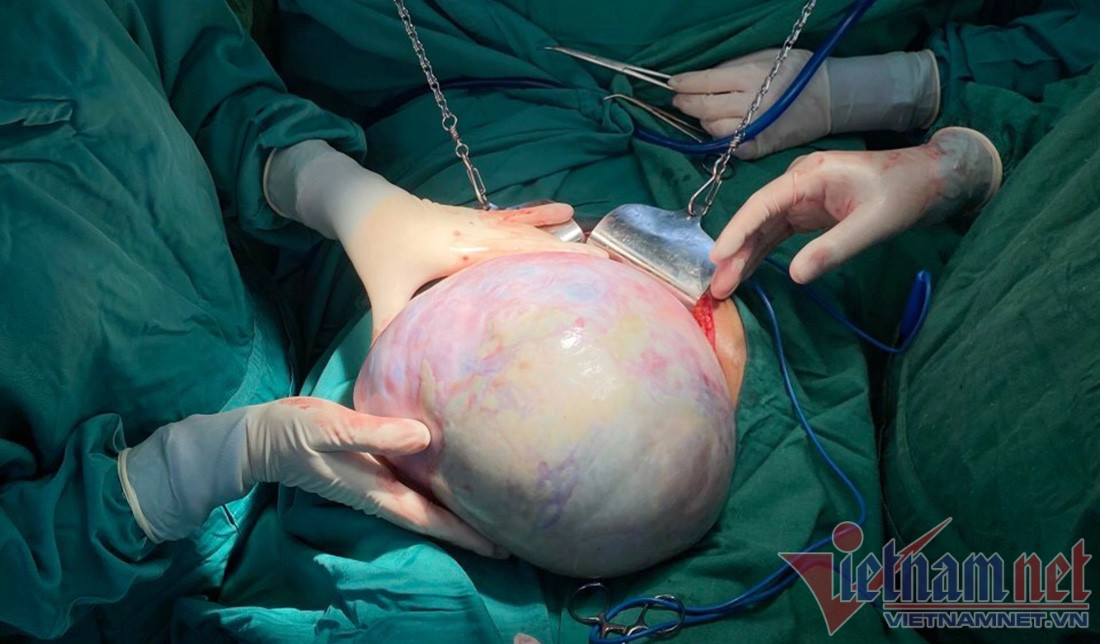 Khối u chiếm gần như toàn bộ ổ bụng của bà T. tương đương với người mang thai 8 – 9 tháng. Do đó, các bác sĩ chỉ định cho bà T. nhập viện phẫu thuật.