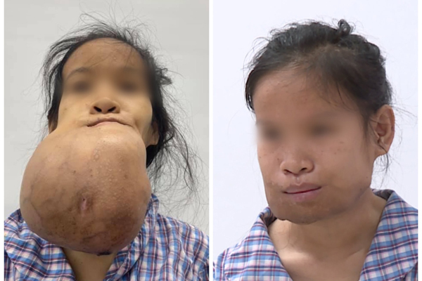 Cằm cô gái Nghệ An mọc khối u to như quả dừa