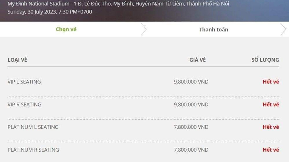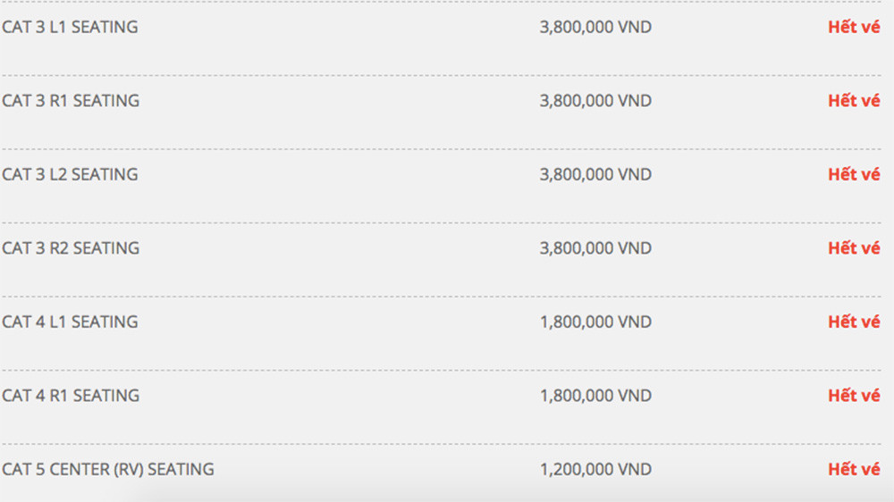 Tuy nhiên, sau khi ổn định truy cập, website bán vé trực tuyến hiển thị còn nhiều vé chưa bán hết. Theo quan sát của VietNamNet, tính tới sáng 11/7, nhiều hạng vé của ngày diễn đầu (29/7) vẫn chưa được bán hết, chủ yếu ở hạng CAT 1 và Platinum.
