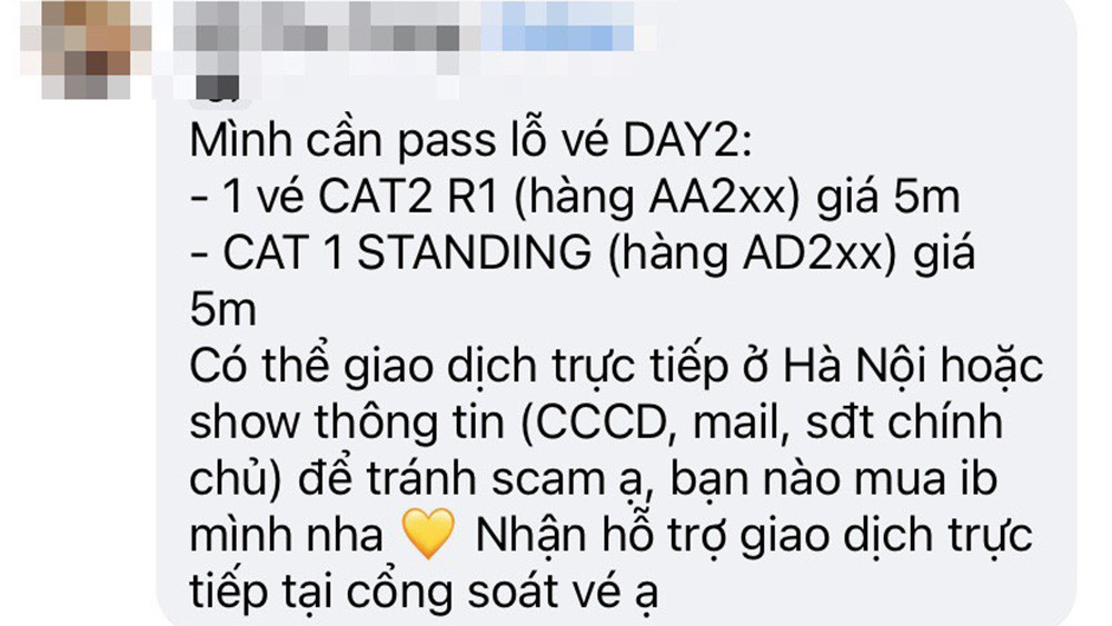 Tình trạng bán lỗ vé concert có lợi cho người hâm mộ và cũng là bài học cho các phe vé. Tuy nhiên, người mua cũng cần đề phòng các đối tượng lợi dụng tư tưởng ham rẻ, đợi bán lỗ để lừa bán “vé ảo” nhằm trục lợi. Vé được phát hành dưới dạng mã QR nên với sự phức tạp của tình trạng nhượng hay trao đổi vé, người hâm mộ cần đề cao cảnh giác.