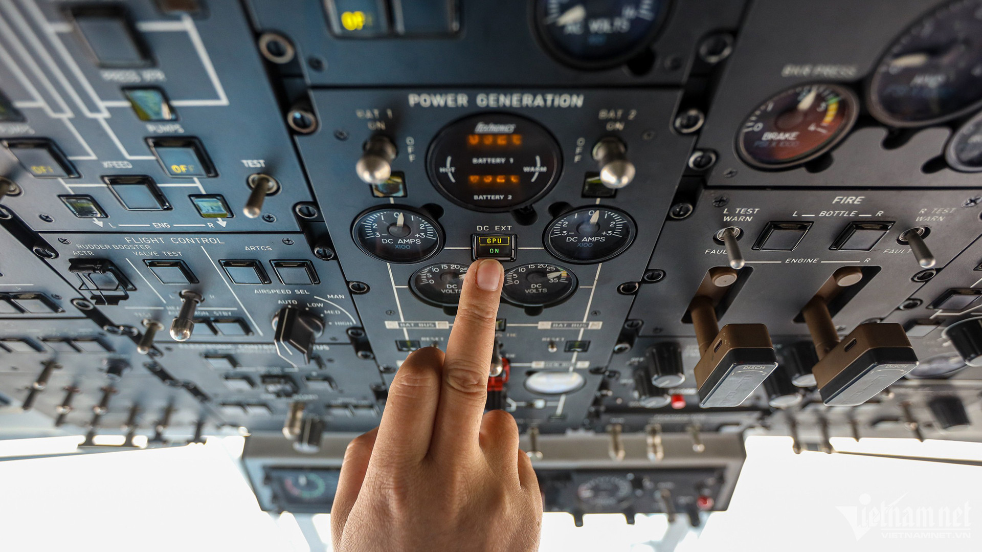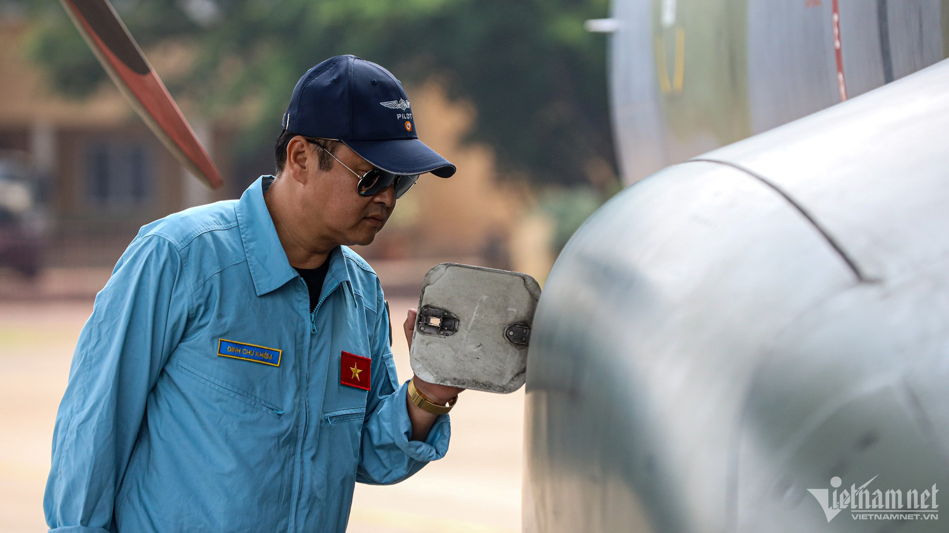 Phi công Đinh Chu Khiêm kiểm tra tỉ mỉ trước khi cất cánh.