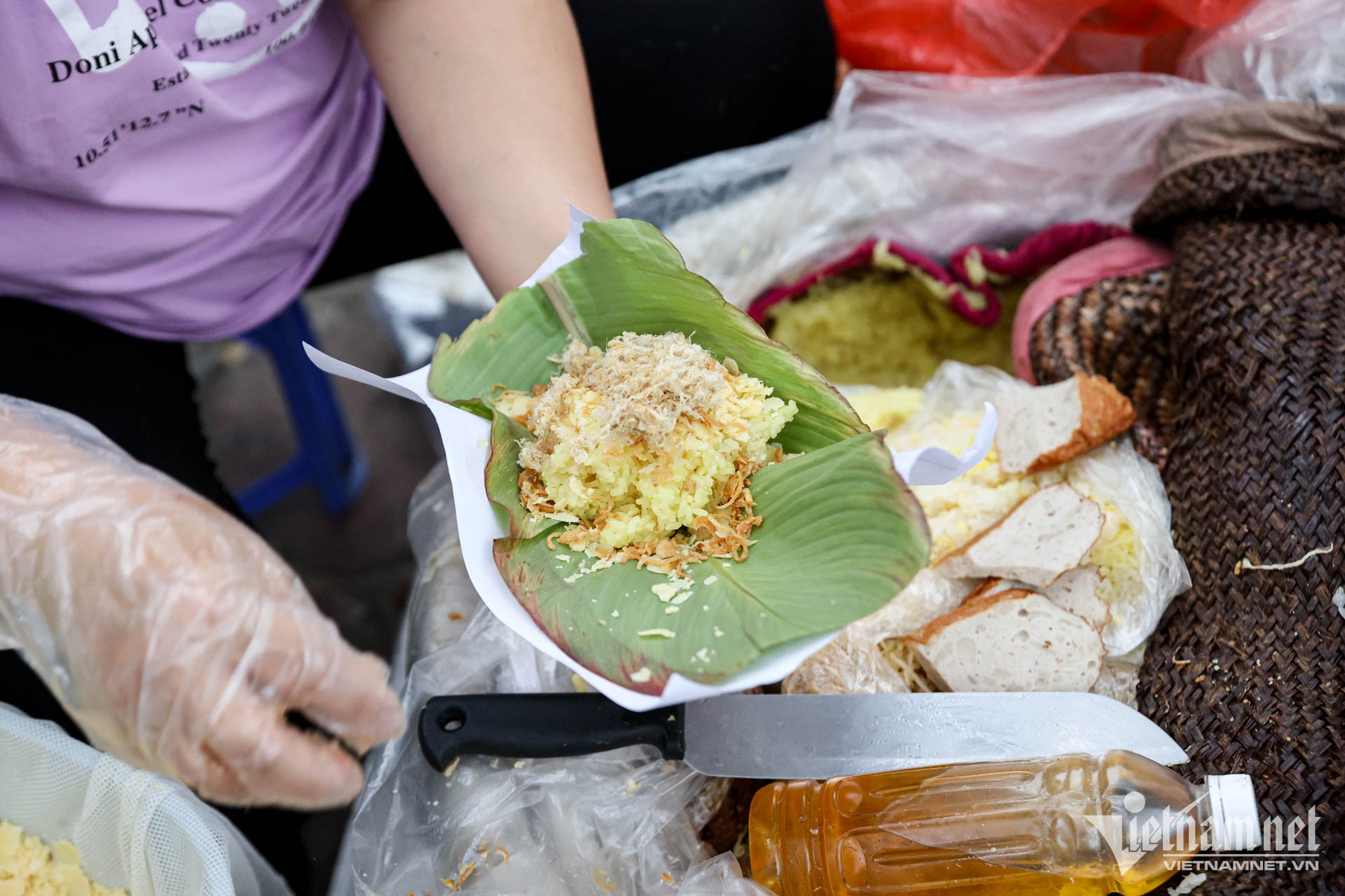6h sáng, khi hàng xôi của chị Bạch Hải Yến (vợ anh Cường) mới chỉ bắt đầu bày ra đã có rất nhiều người đến mua.