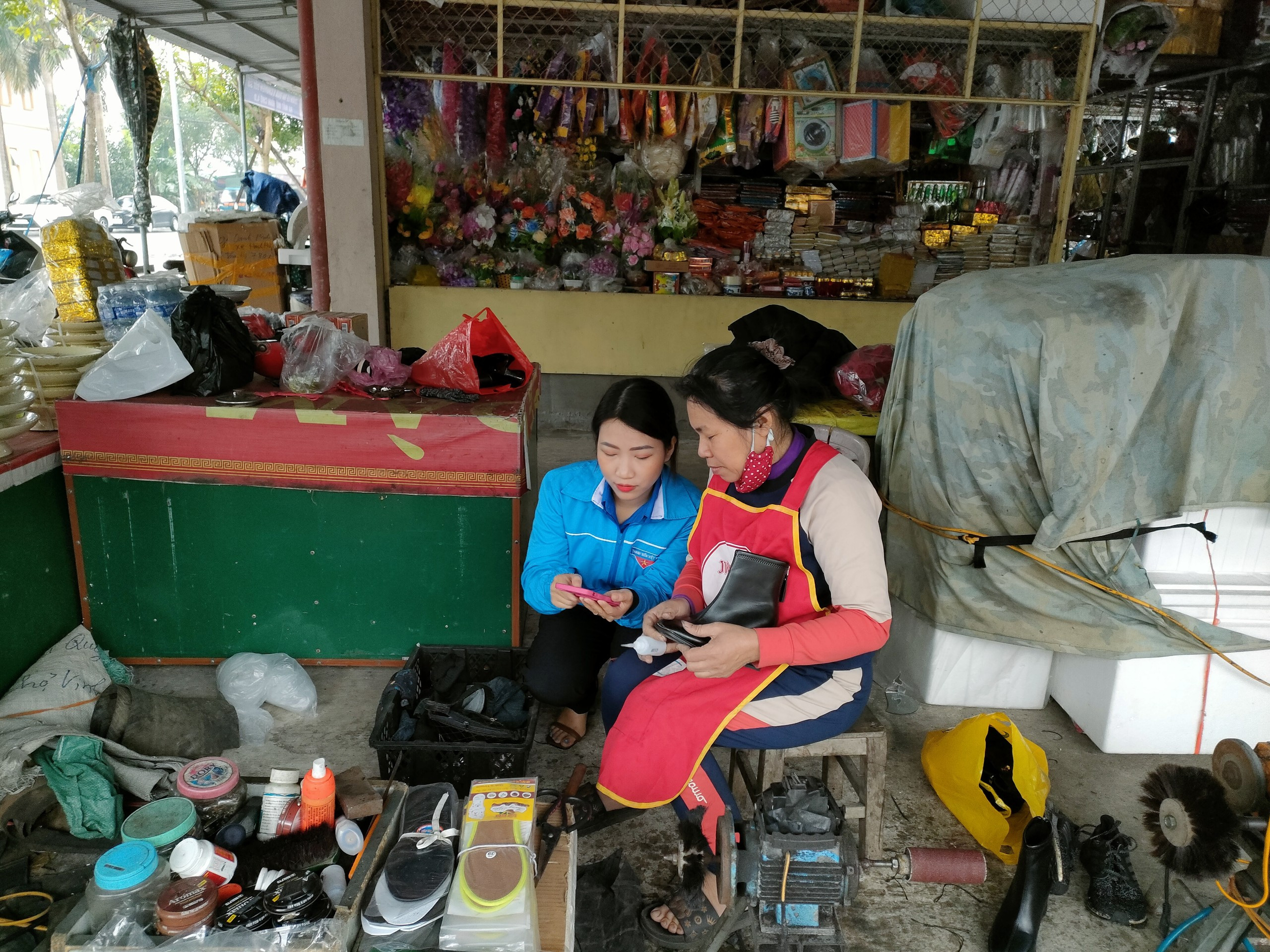 Theo chị Lê Thương, Phó Bí thư Đoàn phường Bắc Hồng, trong thời gian 1 tuần (từ ngày 24-31/12), Ban Chỉ đạo Chuyển đổi số phường Bắc Hồng đã tuyên truyền, vận động các cơ sở kinh doanh, cửa hàng bán buôn, bán lẻ tại Trung tâm thương mại - Chợ Hồng Lĩnh và các tổ dân phố sử dụng hình thức thanh toán không dùng tiền mặt.