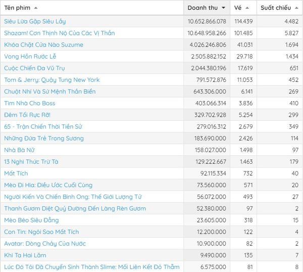 Điều đáng nói là cuối tuần qua, bộ phim này xếp cuối bảng về doanh thu, thậm chí còn thua xa doanh số của Những đứa trẻ trong sương - bộ phim tài liệu Việt vào vòng rút gọn của đề cử Oscar 2023 cho Phim tài liệu hay nhất. Tác phẩm này bán được 2.426 vé trên tổng số 114 suất chiếu trên toàn quốc, thu về 183,7 triệu đồng - con số khá khả quan với dòng phim này.