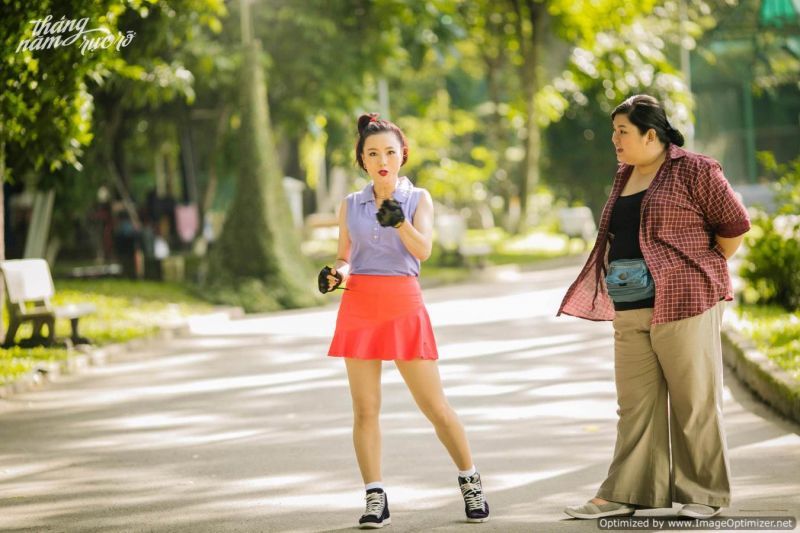 Trong 'Tháng năm rực rỡ' của Dũng 'khùng', Hồng Ánh sẽ xuất hiện một cách đầy lạ lẫm với tạo hình học sinh và tham gia vào một cảnh đánh nhau đặc trưng học đường.