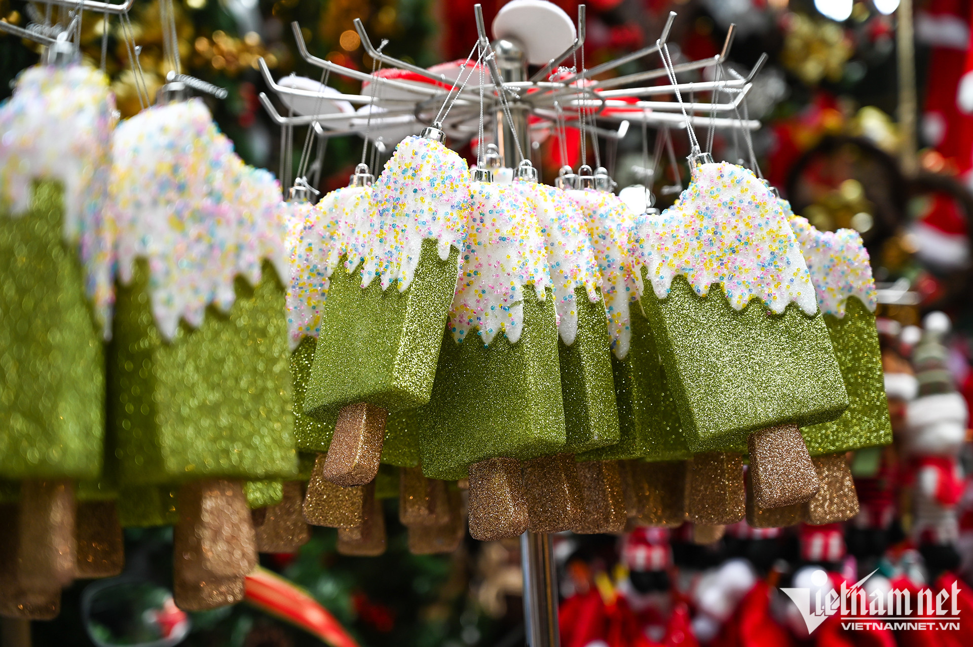 Cùng với phụ kiện trang trí có sắc đỏ, xanh, nâu, trắng khá đặc trưng, những chiếc kẹo cây gậy, người tuyết, ông già noel, cây thông,... cũng được bày biện đẹp mắt, thu hút sự quan tâm của người qua lại.