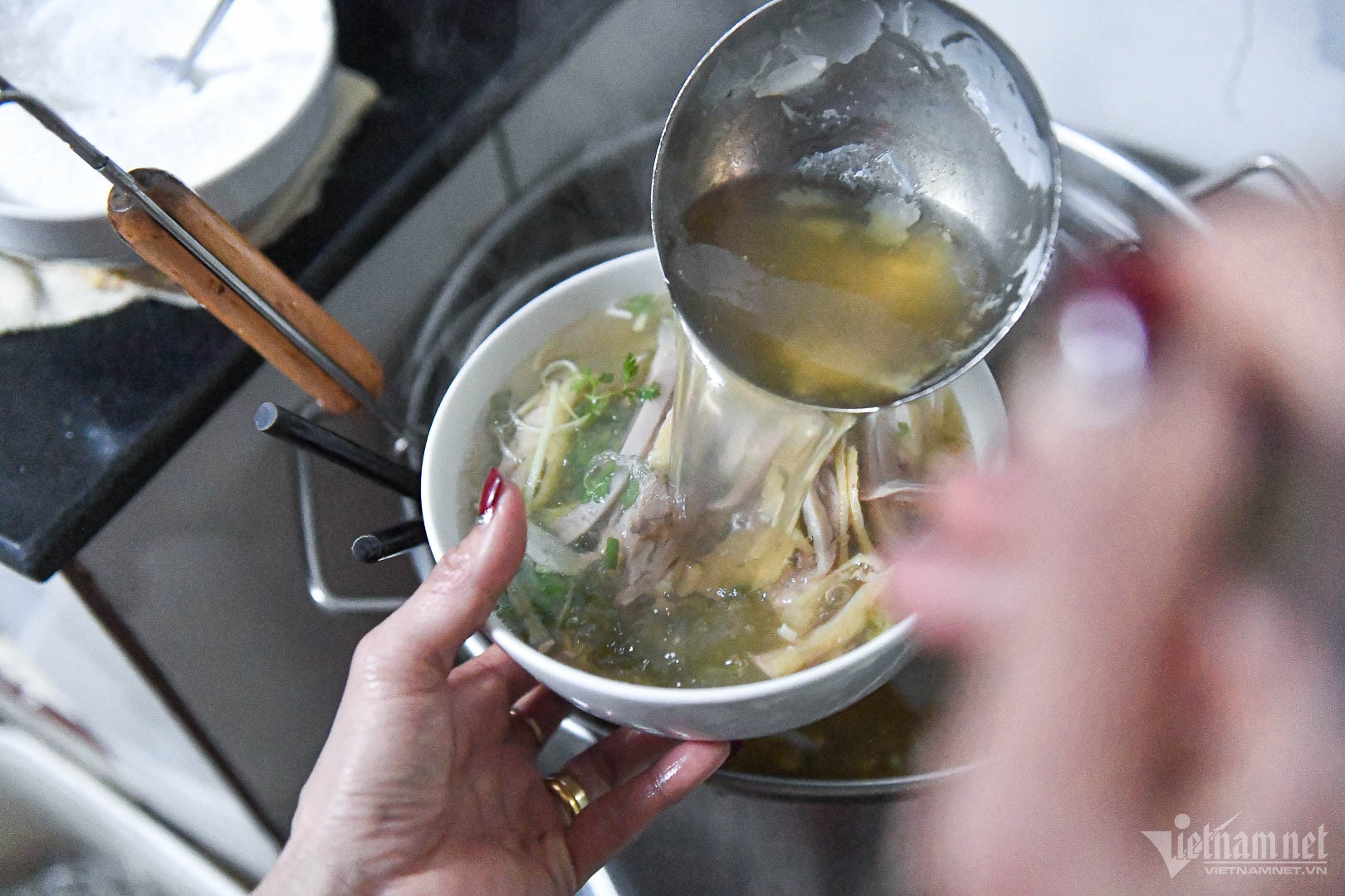 Quán phở gà của gia đình bà Nguyễn Thị Ánh (51 tuổi) nằm trong con ngõ nhỏ, cũ kĩ 42 Hàng Đào. Con ngõ chỉ rộng chừng 1m, sâu hun hút, khá tối. Phở được bán ngay phòng khách của căn nhà, nơi chỉ đủ kê vài chiếc bàn nhựa, xung quanh vẫn để tivi, tủ lạnh, tủ kệ sinh hoạt....