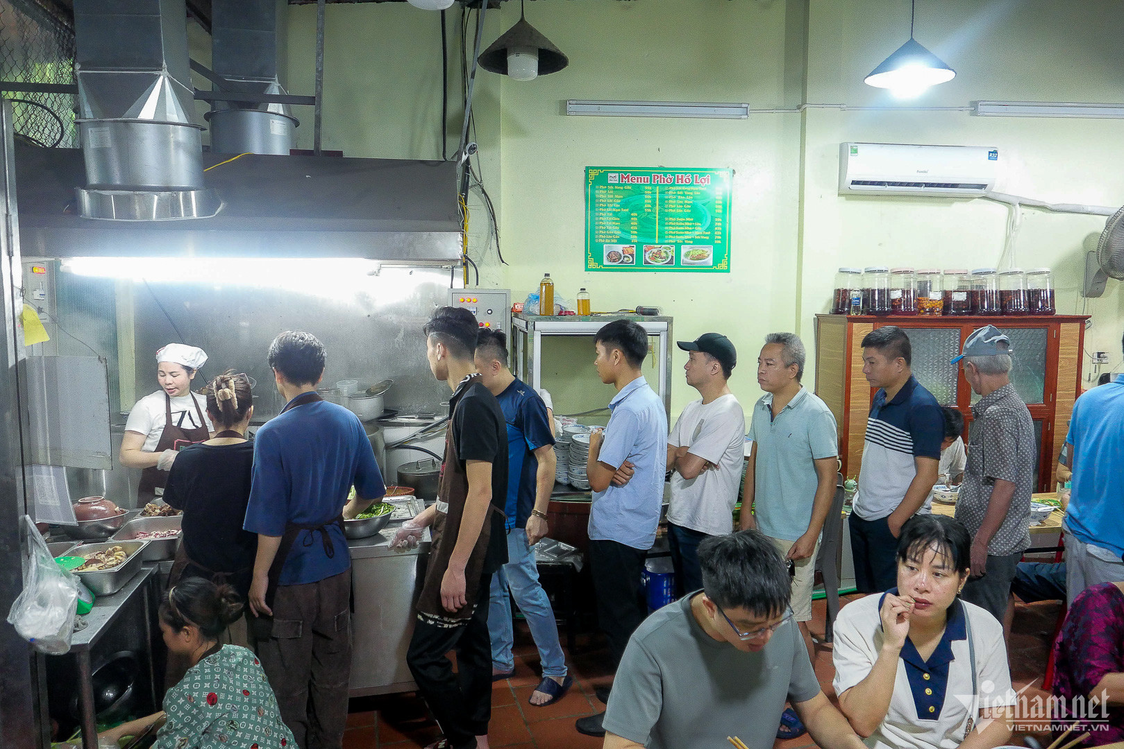 Ngày cuối tuần, dù trời mưa lớn, quán phở Hồ Lợi ở Phú Thượng (Tây Hồ, Hà Nội) vẫn tấp nập thực khách. Hàng chục người xếp hàng dài trước quầy, chờ gọi món, thanh toán và đợi bàn trống.