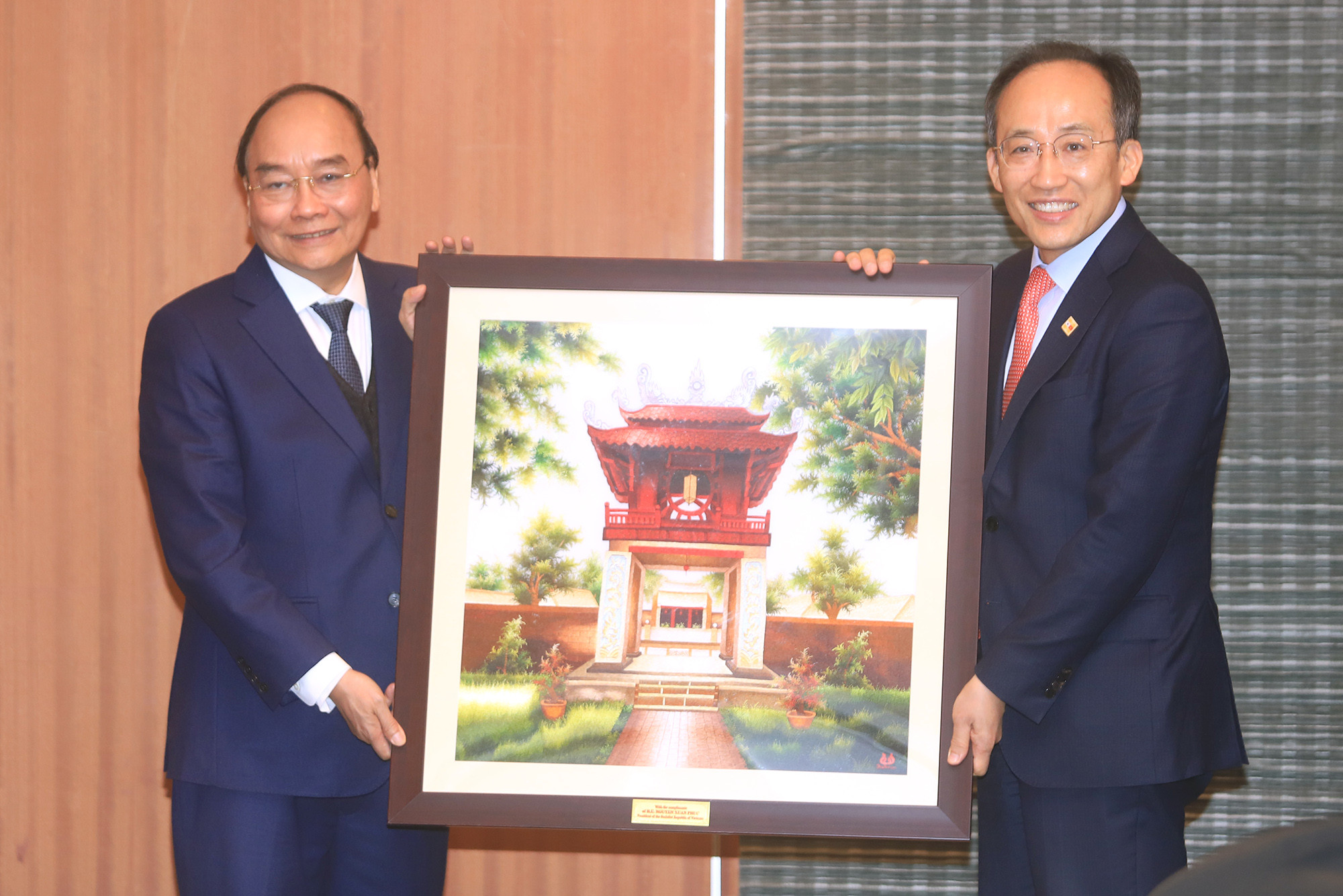 Chủ tịch nước Nguyễn Xuân Phúc hoan nghênh việc Phó Thủ tướng Choo Kyung-ho thay mặt Thủ tướng Han Duck-soo tham dự Diễn đàn doanh nghiệp Việt Nam - Hàn Quốc. Chủ tịch nước cho biết, đã cùng Tổng thống Hàn Quốc tuyên bố nâng cấp quan hệ hai nước lên Đối tác chiến lược toàn diện, mở ra chương mới, hợp tác sâu rộng giữa hai nước.
