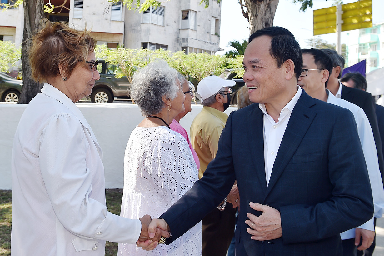 Phó Thủ tướng Trần Lưu Quang thăm hỏi người dân Thủ đô La Habana đến thăm Tượng đài Chủ tịch Hồ Chí Minh. Ảnh: VGP/Hải Minh