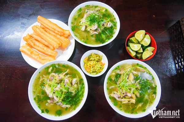 Gà vớt ra khỏi nồi nước dùng sẽ được chặt, lọc xương, thái, chia thành các phần khác nhau như đùi, cánh, má đùi... ngay tại quầy. "Nhiều quán phở gà ở Hà Nội hay thái, chặt trước rồi bày sẵn ra đĩa nhưng quán này thì làm tại chỗ. Nhìn thấy tươi ngon, hấp dẫn hơn hẳn. Khi ăn thì tôi thấy gà mềm, ngon nhưng không bị bở, nước dùng thơm lắm", một vị khách chia sẻ.