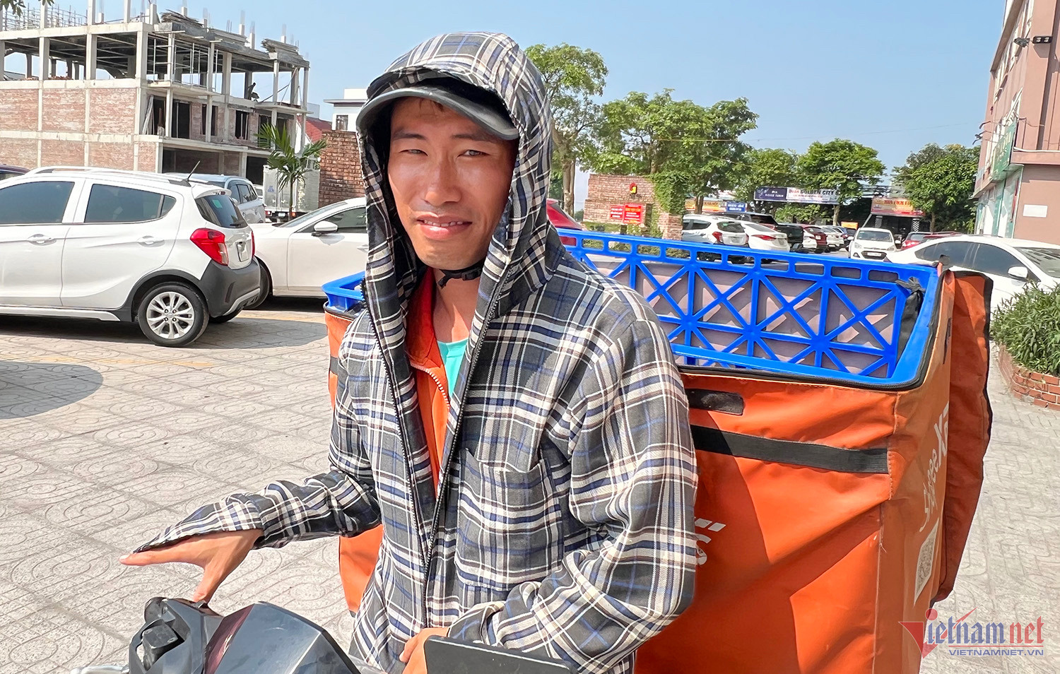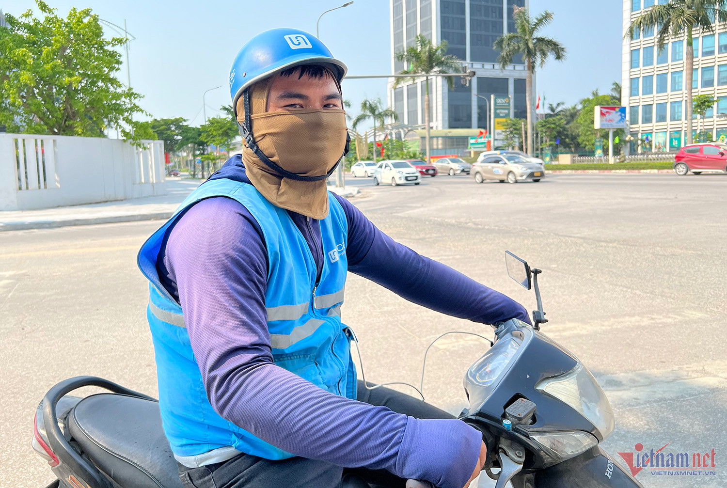 “Em chạy xe giao hàng xuyên trưa, dù đã trùm kín mặt mũi nhưng vẫn bỏng rát. Mỗi đơn hàng đi giao dưới 2,5km em nhận 12 ngàn đồng. Mỗi ngày em làm việc khoảng 8 tiếng đồng hồ, thu nhập 200 - 300 ngàn đồng/ngày” - anh Dũng bộc bạch.