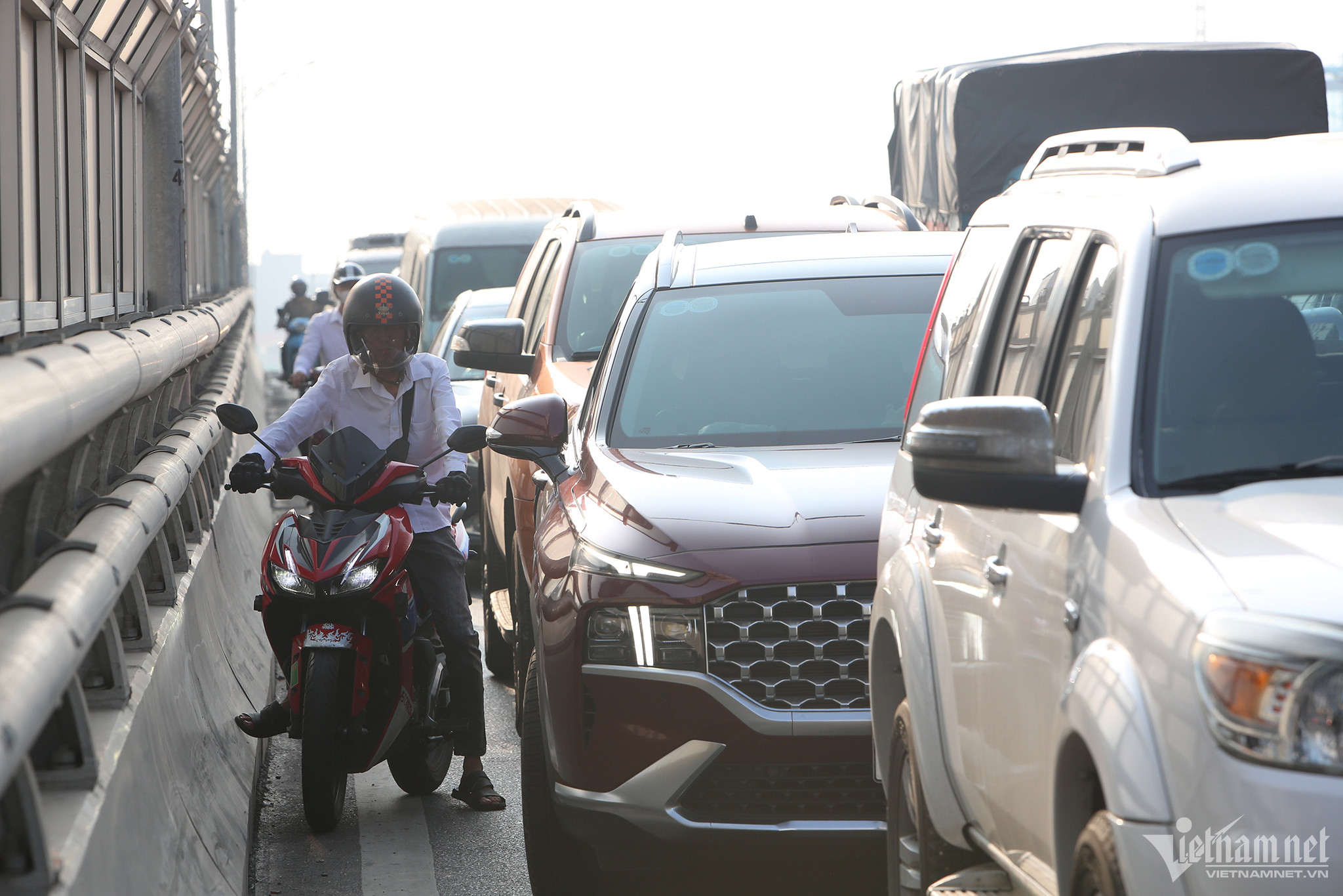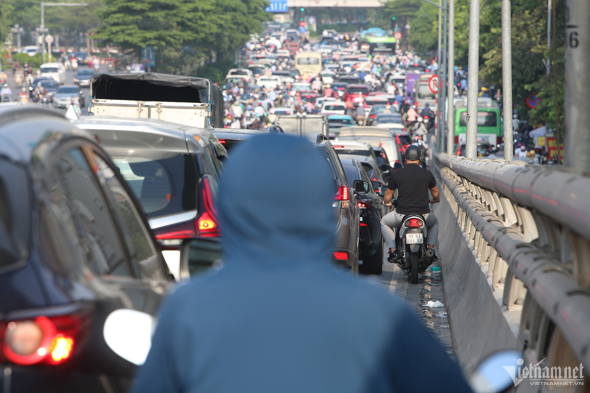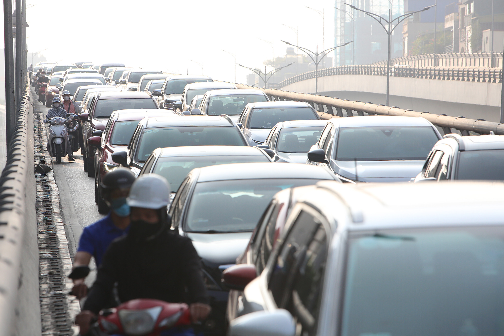 Tài xế Nguyễn Tiến Hiệp (Hoàng Mai, Hà Nội) cho biết, bản thân anh rất ngao ngán khi phải điều khiển ô tô "đi chung" với xe máy trên Vành đai 2 trên cao.