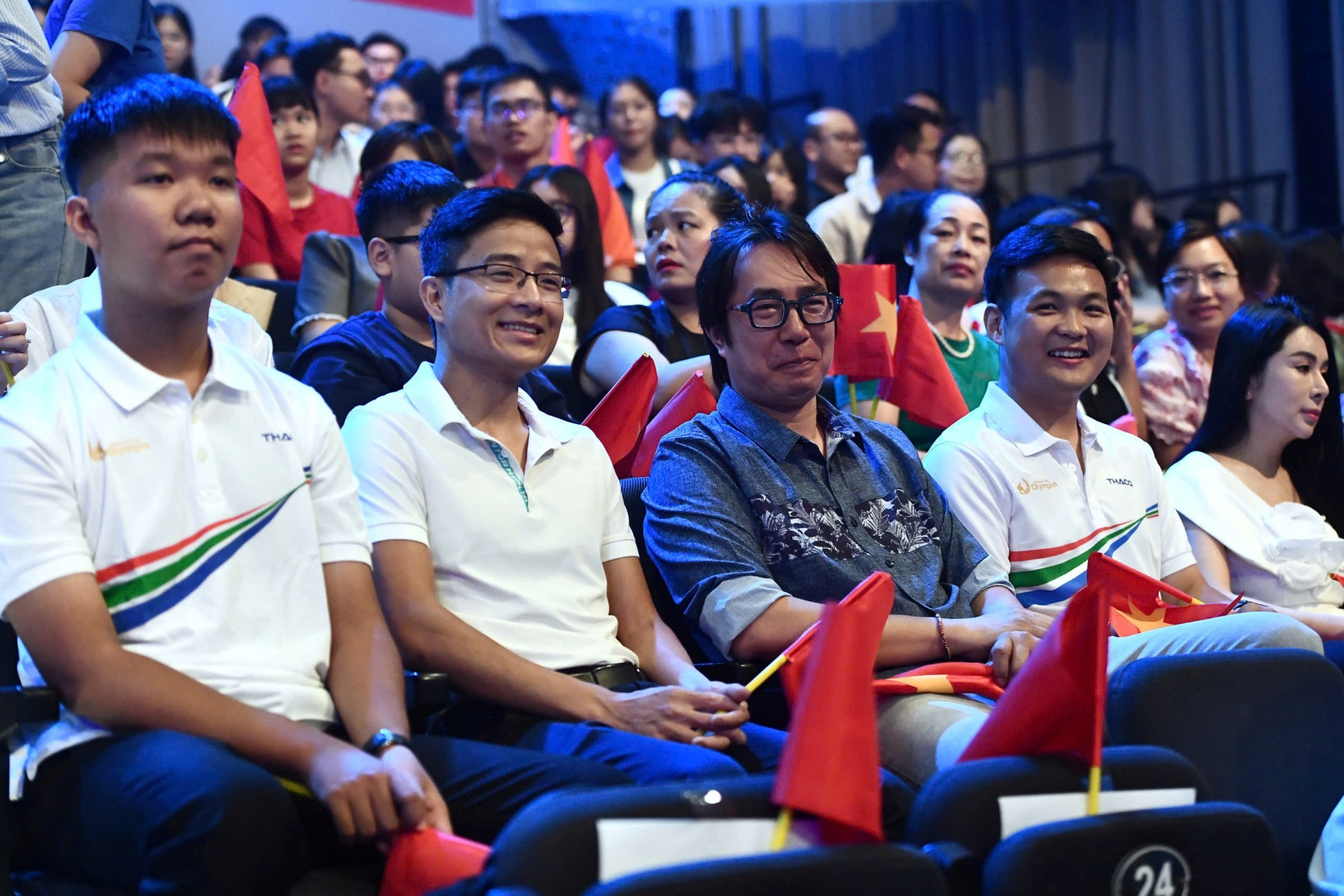 Khán giả có mặt từ sớm để cổ vũ cho 4 nhà leo núi. Đặc biệt, nhiều người đã nhận ra sự có mặt của Lê Xuân Mạnh - Quán quân Đường lên đỉnh Olympia 2023.