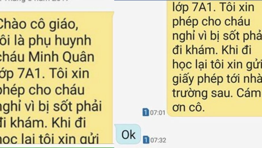 Cách trả lời ngắn gọn bằng một chữ “OK” của giáo viên sau khi phụ huynh nhắn tin xin cho con nghỉ học vì bị bệnh đang là chủ đề với những tranh luận trái chiều.