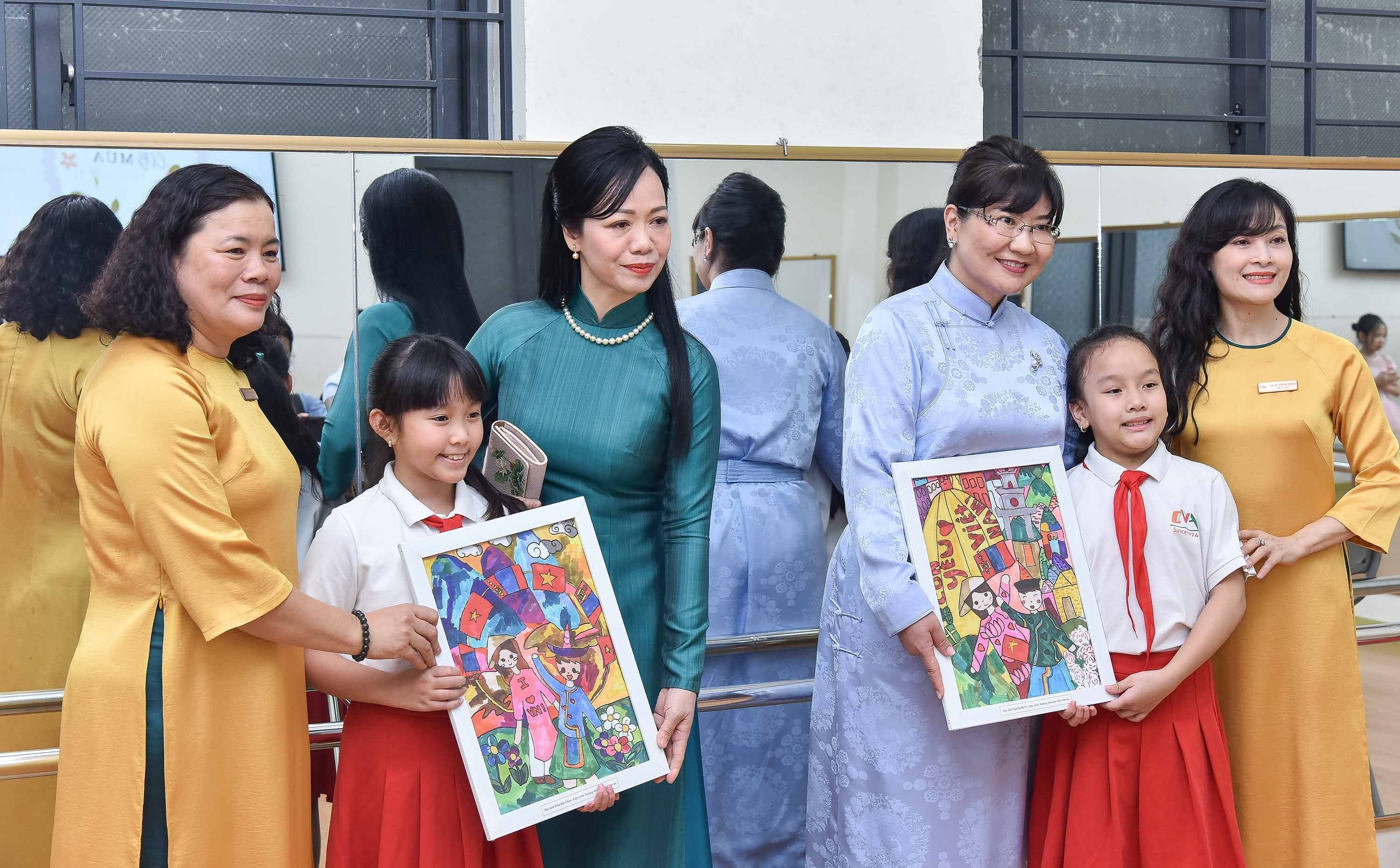 Nhân chuyến thăm cấp Nhà nước tới Việt Nam của Tổng thống Mông Cổ Ukhnaagiin Khurelsukh, chiều 1/11, bà Phan Thị Thanh Tâm - phu nhân Chủ tịch nước và bà Bolortsetseg Luvsandorj - phu nhân Tổng thống Mông Cổ đã đến thăm trường Tiểu học Chu Văn An (260 Thụy Khuê, Hà Nội), gặp gỡ Ban Giám hiệu và học sinh.