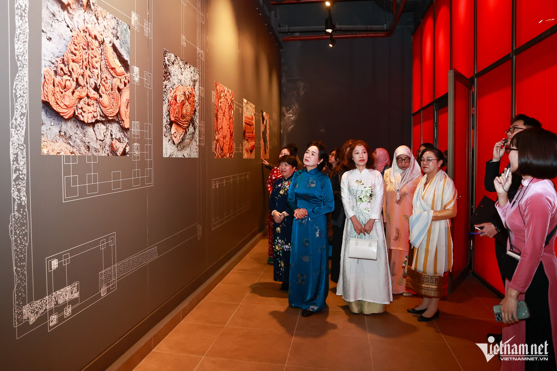 Các nhà ngoại giao nữ đã chiêm ngưỡng không gian trưng bày, với những mô phỏng về một kiến trúc của cung điện thời Lý, được tái tạo giống như bối cảnh khai quật. Hệ thống 42 đèn cột ánh sáng, để gợi mở cho công chúng hình dung về 42 cột gỗ của một công trình kiến trúc cung điện thời Lý.