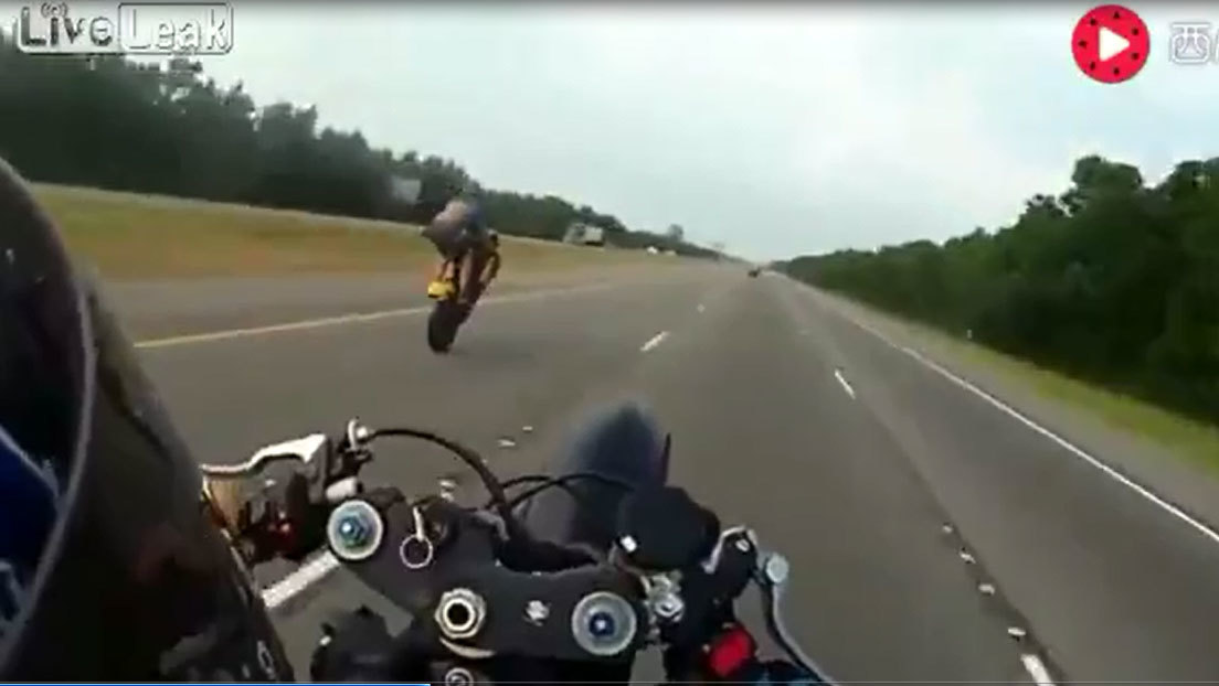 Biker chạy xe bốc đầu trên con đường nhiều phương tiện qua lại, loạng choạng tay lái rồi ngã sõng soài, chiếc mô tô vẫn tiếp tục lao về phía trước, bỏ mặc chủ nhân sau tai nạn.