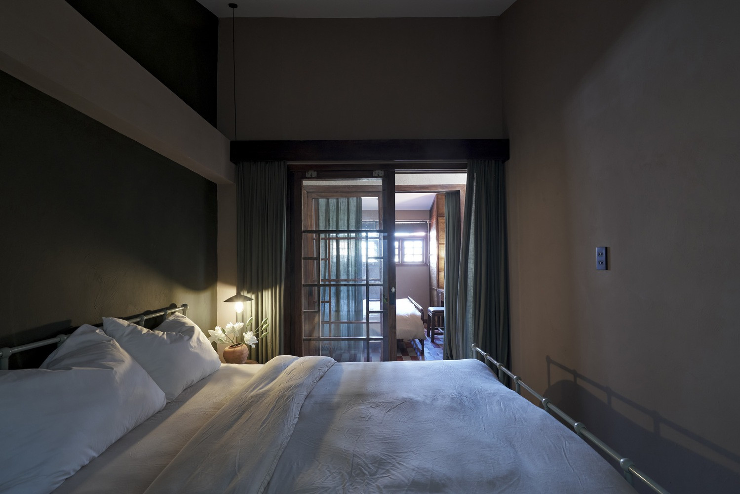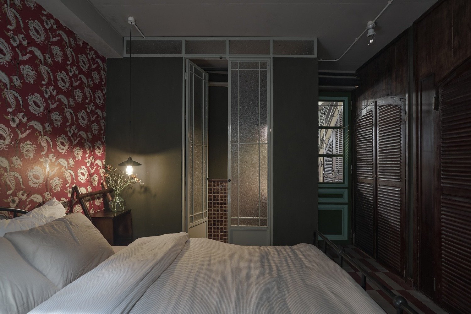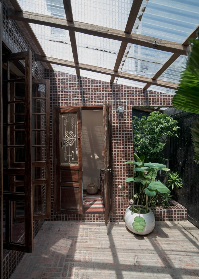 Vẻ đẹp bình dị, mộc mạc thể hiện qua một số cánh cửa cũ được sắp xếp khéo léo vào không gian cùng với các chi tiết làm mới.