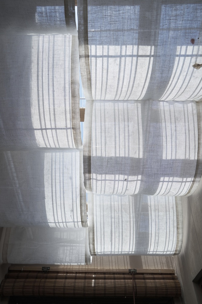 Ấn tượng khi các kiến trúc sư kết hợp các kiểu rèm từ vải linen hoặc tấm lưới trúc đem đến sự thô mộc cho căn nhà theo cách tự nhiên nhất, nhưng tinh tế trong từng chi tiết nhỏ.