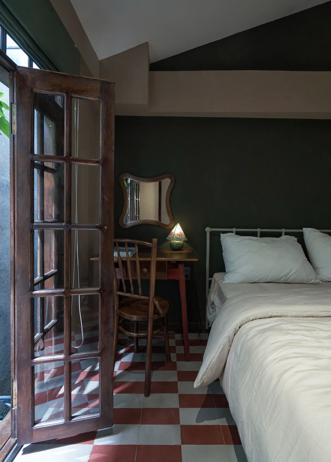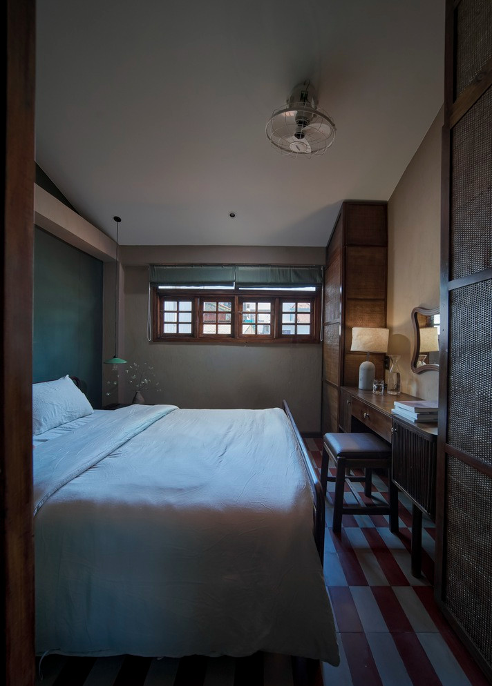 Diện tích mỗi phòng ngủ không quá lớn nên kiến trúc sư ưu tiên việc sắp xếp công năng phù hợp.
