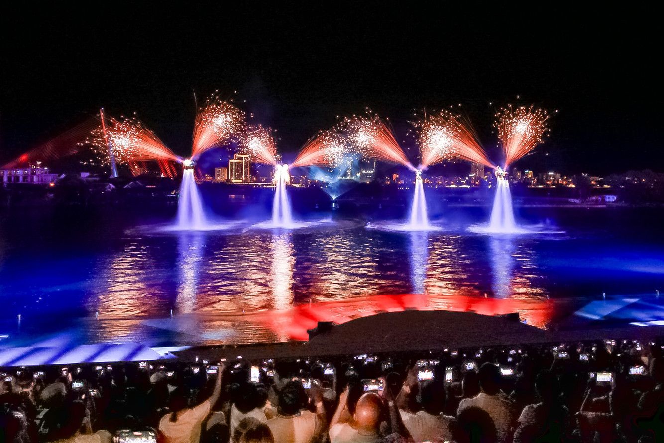 Mỗi tối tại thị trấn Hoàng Hôn, du khách có cơ hội chiêm ngưỡng màn trình diễn đẳng cấp quốc tế của những á quân, quán quân flyboard và jetski thế giới cùng trình diễn gần 20 phút pháo hoa, pháo nước.