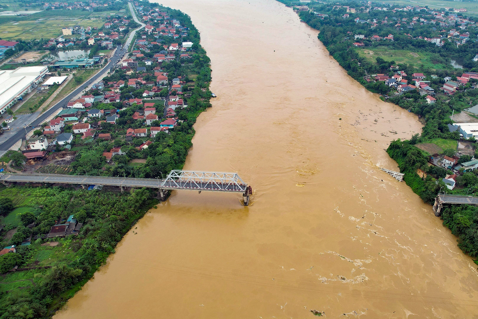 Do ảnh hưởng của cơn bão số 3, nước sông lên cao và chảy xiết, vào khoảng 10h sáng nay (9/9), cầu Phong Châu (tỉnh Phú Thọ) bị sập cuốn trôi trụ T7 và 2 nhịp dàn chính.
