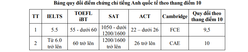 - Với điểm thi của Đại học Quốc gia Hà Nội: