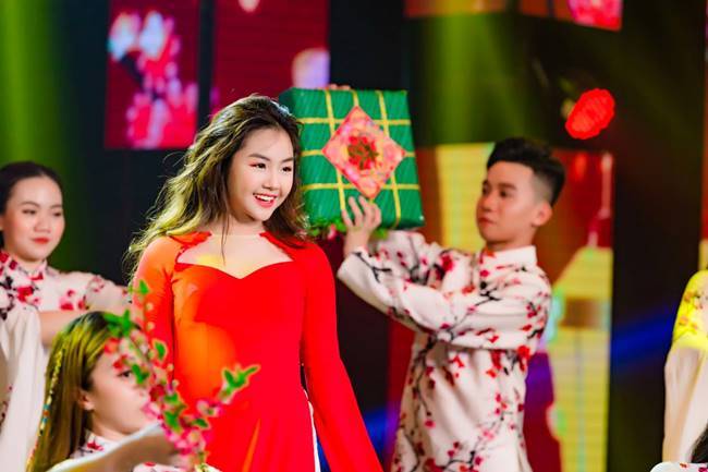 Mới đây, hình ảnh Khánh An diện áo dài trên sân khấu nhanh chóng thu hút được sự chú ý của người hâm mộ. |