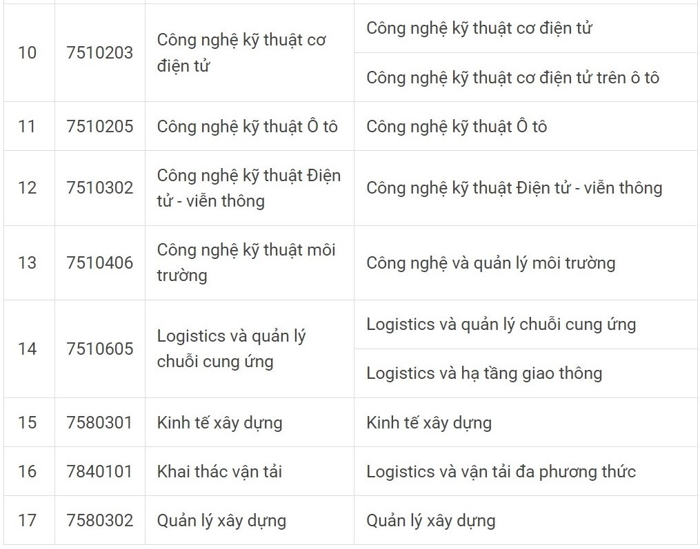 Các ngành tuyển sinh của Trường ĐH Công nghệ Giao thông vận tải năm 2023 như sau: