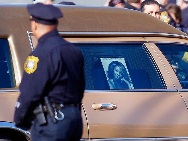 Chiếc xe lăn bánh, chở thi thể của Whitney về nơi an nghỉ cuối cùng.