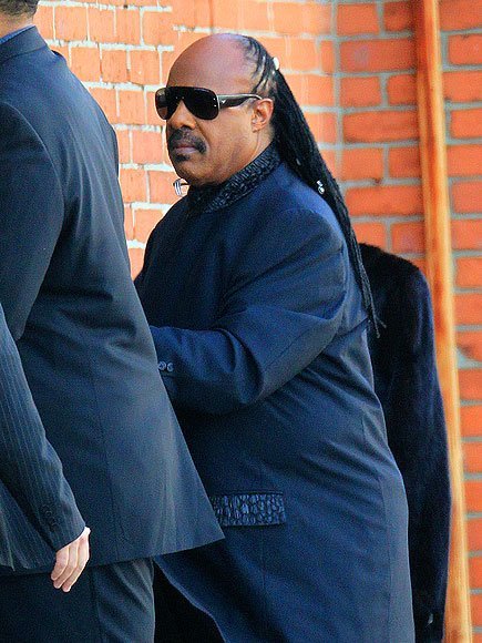 Ca sĩ Stevie Wonder, người bạn lâu năm của Whitney, tới lễ tang và hát tặng cô ca khúc kinh điển "Ribbon in the