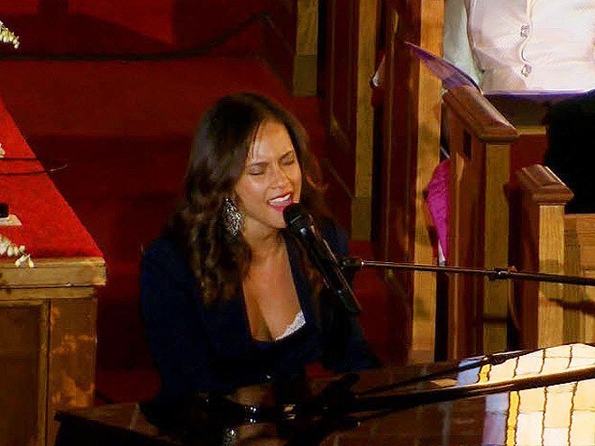 Alicia Keys đã khóc khi biểu diễn ca khúc "Send Me an Angel" trong đám tang của Whitney.