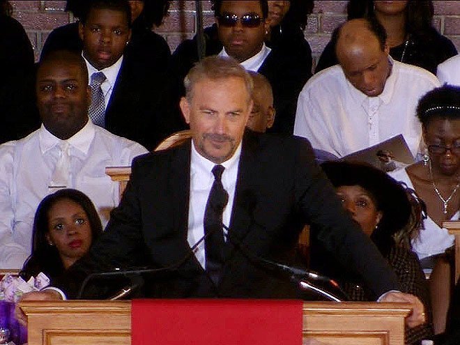 Diễn viên Kevin Costner, người đóng "Vệ sĩ" cùng nữ ca sĩ xấu số phát biểu trong lễ tang của Whitney.