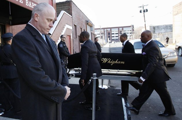 Sau 3,5 tiếng đồng hồ làm lễ, quan tài chứa thi thể của Whitney được chuyển ra khỏi nhà thờ.