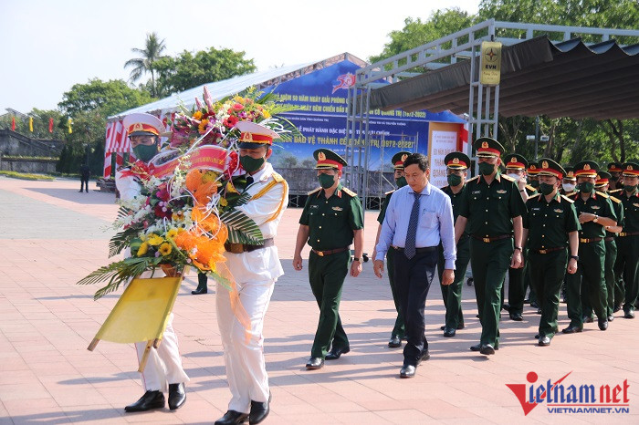 Trong khuôn khổ chương trình Hội thảo khoa học cấp Bộ Quốc phòng “Giải phóng Quảng Trị và Chiến đấu bảo vệ Thành cổ năm 1972 – Nửa thế kỷ xây dựng, đổi mới và phát triển”, chiều nay (28/4), đoàn Ban chỉ đạo hội thảo do Thượng tướng Lê Huy Vịnh – Ủy viên Trung ương Đảng, Thứ trưởng Bộ Quốc phòng dẫn đầu đã đến viếng, đặt vòng hoa, dâng hương tri ân các anh hùng liệt sỹ tại Thành cổ Quảng Trị.