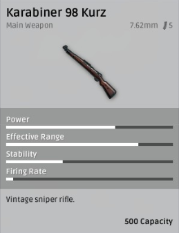 Nơi tìm ra: Khẩu Kar98k thường được tìm thấy ở các khu quân sự, nhà ở và căn hộ.